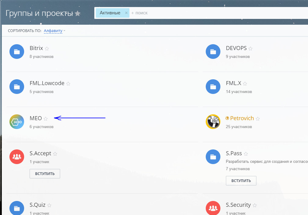 Для того, чтобы залогировать свое время в конце рабочего дня либо в течение дня заходите в «Группы» и выбираете свой проект